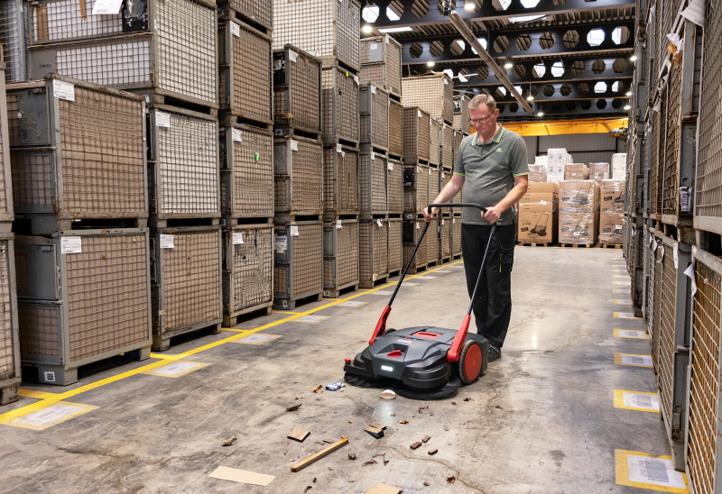 Dank dem zweistufigen Kehrsystem kann grober bis feiner Schmutz effektiv aufgenommen werden. Das Tellerbesen System ist mit einer dahinterliegenden Feinschmutz Kehrwalze kombiniert. Der überfahrene Bereich wird dadurch zweifach gekehrt.
